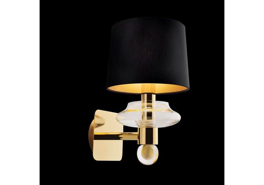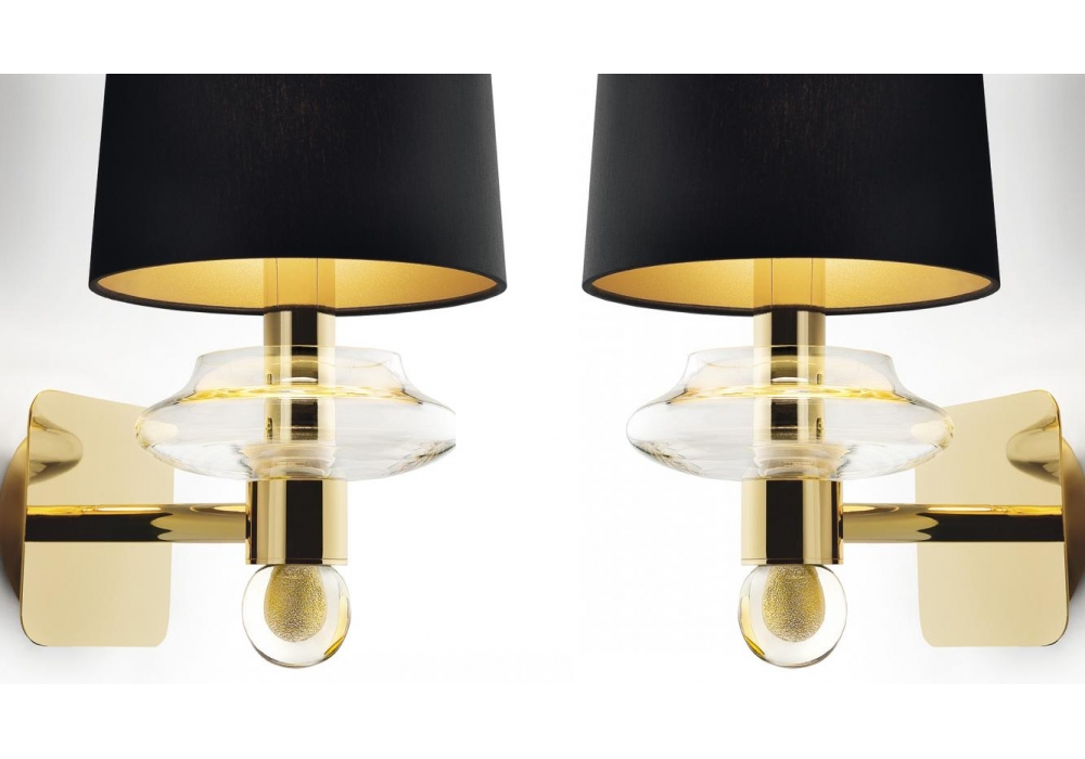 Saint Germain conçue par Giorgia Brusemini pour Barovier & Toso est une applique avec structure en métal. Les parties en verre qui le caractérisent sont disponibles en différentes couleurs. La source lumineuse utilisée est de type LED ou halogène dimmable blindée par un abat-jour en tissu. Saint Germain est disponible en différentes finitions.