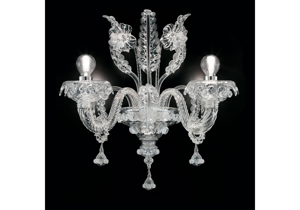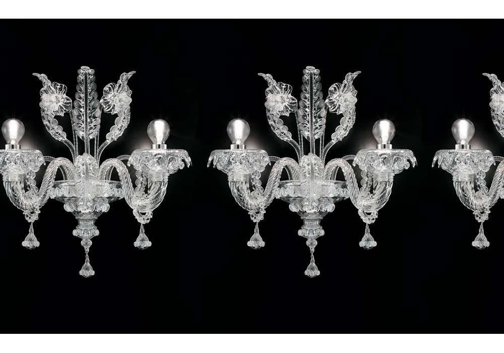 Agadir conçue et produite par Barovier & Toso est une applique avec structure portante et détails en métal recouvert de verre vénitien. Les sources lumineuses retenues sont de type LED dimmable ou halogène. Agadir est disponible en différents modèles et finitions.