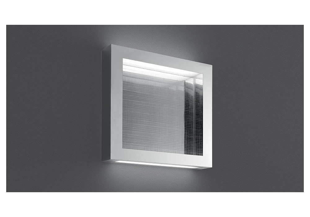 Altrove 600 conçue par Carlotta de Bevilacqua pour Artemide est une applique ou plafonnier avec une structure périmétrique porteuse en aluminium miroir. Les diffuseurs latéraux sont en prismoptique satiné tandis que le diffuseur frontal est en méthacrylate transparent gravé. Les sources lumineuses adoptées sont de type LED avec système de gradation Push qui peut également être contrôlée à distance.