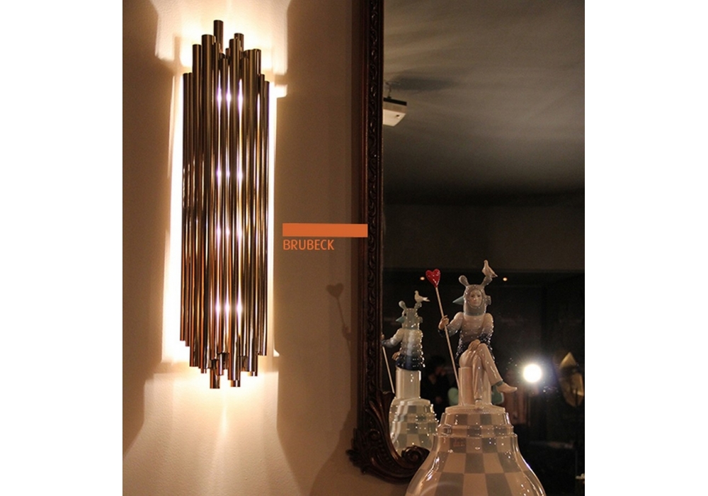 Brubeck XL conçue par DelightFULL est une applique, le corps est fait à la main en laiton et s'inspire de l'orgue à tuyaux. Pour la touche finale, il bénéficie d'une finition plaquée or très art déco.