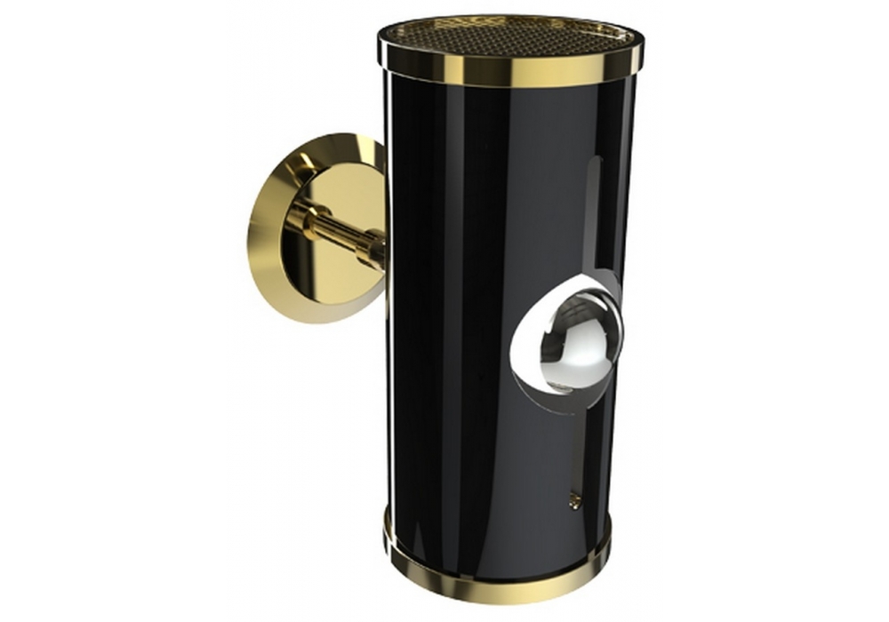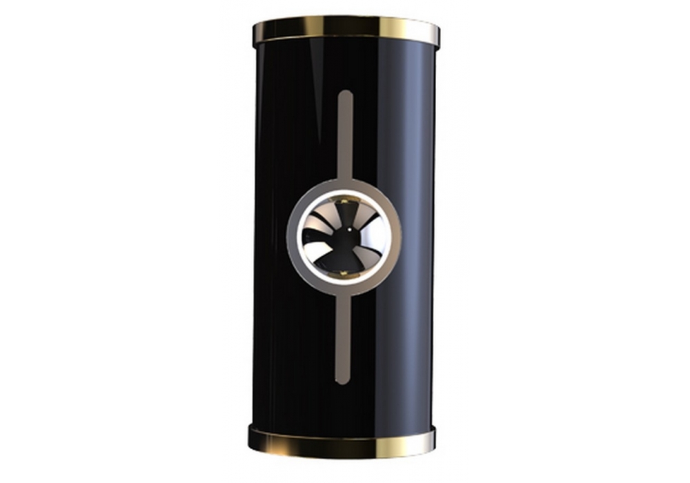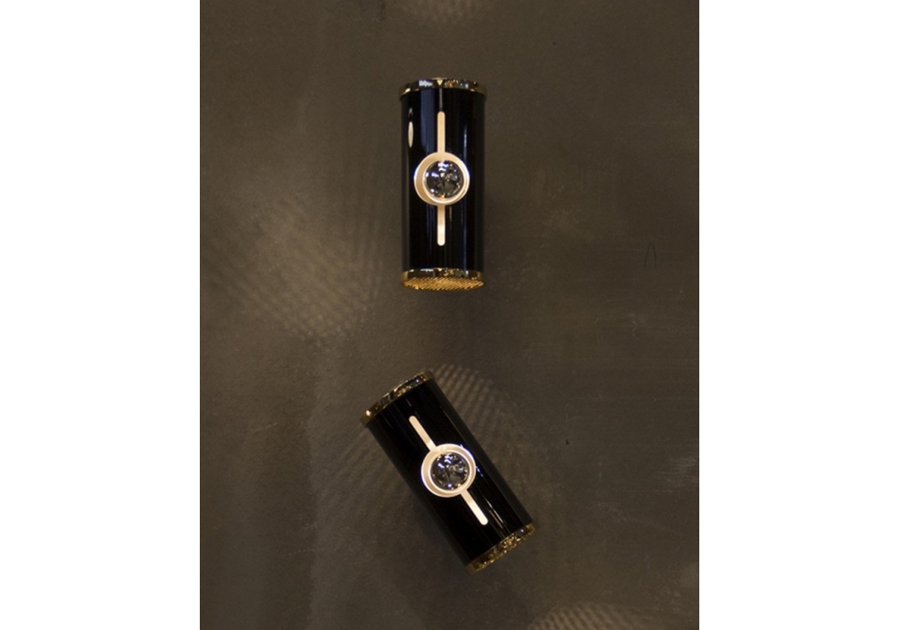 Chuck conçu par DelightFULL est une lampe fabriquée à la main en laiton avec une finition plaquée or standard, tandis que l'abat-jour réel est construit en aluminium et présente un laquage noir brillant.