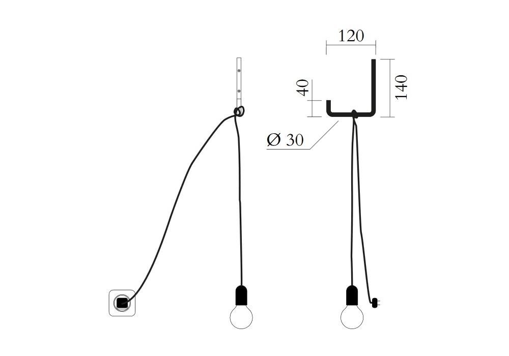 Hook Light conçu par Atelier Areti est une lampe murale en métal, câble recouvert de tissu, disponible en deux versions, avec fiche ou rosette en métal.