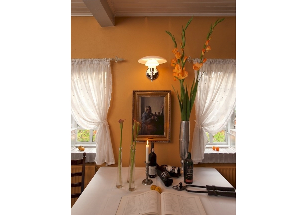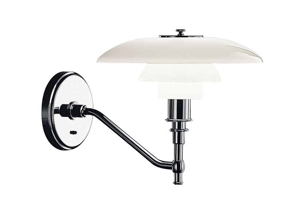 PH 3/2 conçue par Poul Henningsen pour Louis Poulsen est une applique avec structure portante en laiton chromé tiré. Le diffuseur est en verre blanc opale et abrite une source lumineuse avec douille E14 de type LED ou halogène avec différentes options de contrôle.