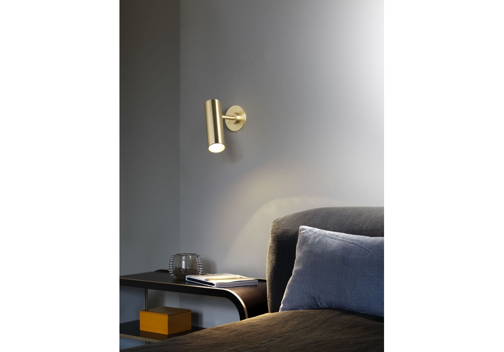 Heron conçue par CTO Lighting est une applique réalisée en laiton satiné avec abat-jour réglable.