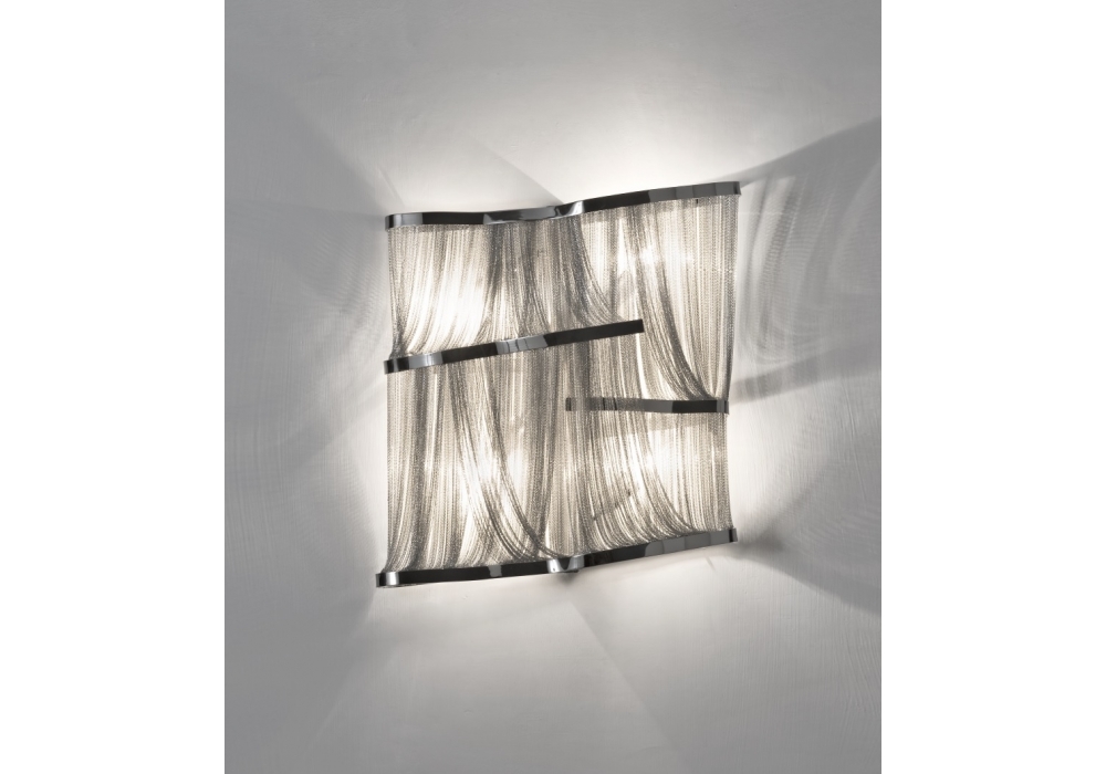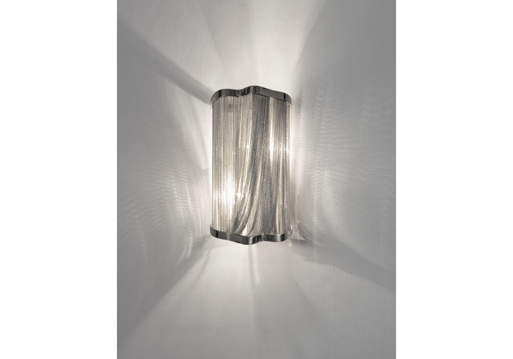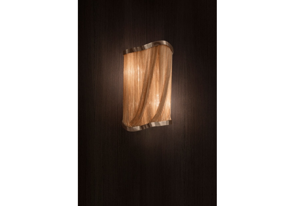 Atlantis conçue par Barlas Baylar pour Terzani est une applique avec structure et maillons suspendus en métal plaqué en différentes finitions. La source lumineuse utilisée est de type LED dimmable. Atlantis est disponible en différents modèles et finitions.