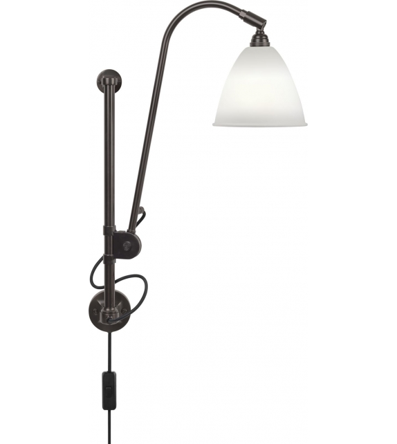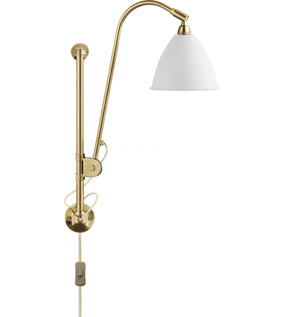 Bestlite BL5 conçue par Robert Dudley Best for Gubi est une applique avec structure en chrome ou en laiton. Abat-jour en métal peinté en poudre. Elle peut être inclinée de 90 degrés de l'horizontale à la verticale, l'abat-jour peut également être tourné de 360 degrés. Le cordon textile correspond à l'abat-jour, sauf le version en chrome qui est noir, et la version en laiton est doré.