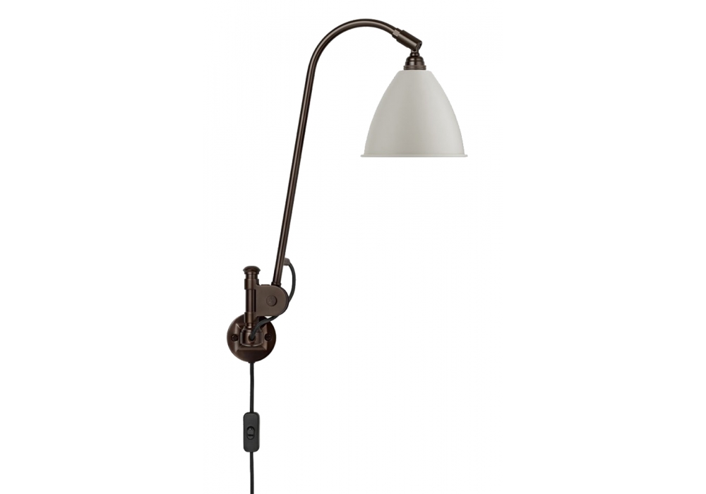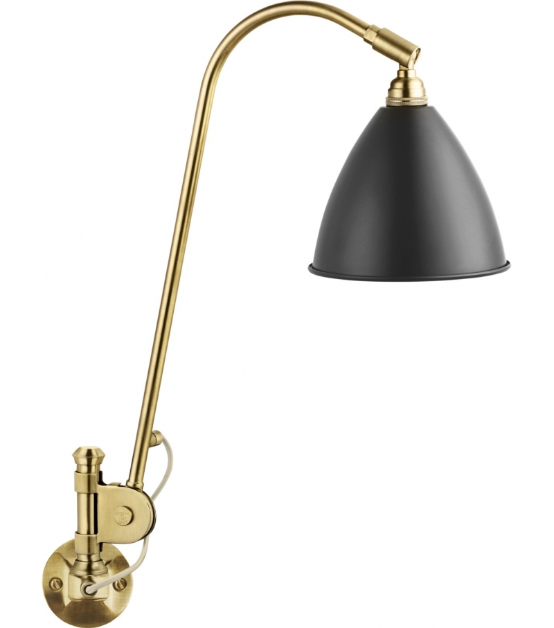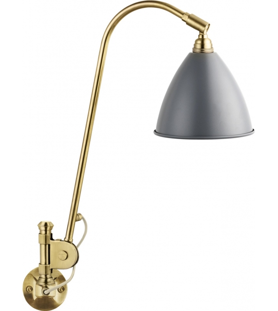 Bestlite BL6 conçue par Robert Dudley Best for Gubi est une applique avec structure en chrome ou en laiton. Abat-jour en métal peinté en poudre. Elle peut être inclinée de 90 degrés de l'horizontale à la verticale, l'abat-jour peut également être tourné de 360 degrés. Le cordon textile correspond à l'abat-jour, sauf le version en chrome qui est noir, et la version en laiton est doré.