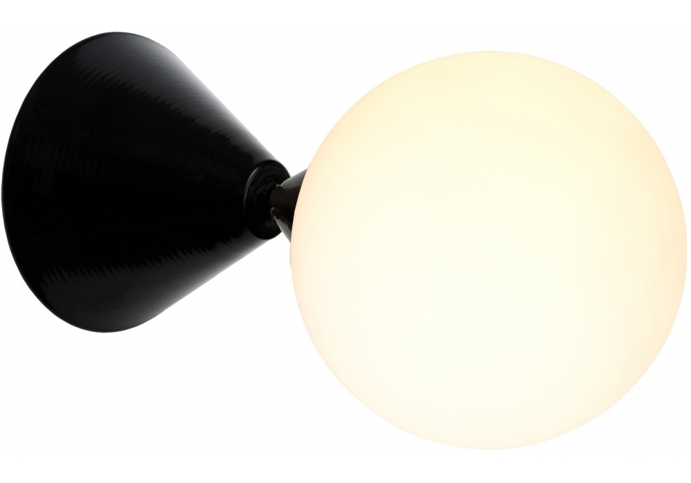 Cone And Sphere conçue par Atelier Areti est une applique caractérisée par une structure en métal peint en blanc ou noir avec un abat-jour en verre en forme de sphère. Disponible en deux versions.