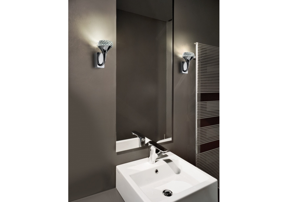 Fairy conçue par Manuel Vivian pour Axo Light est une applique avec structure en métal et diffuseur en cristal. Disponible en différentes finitions.