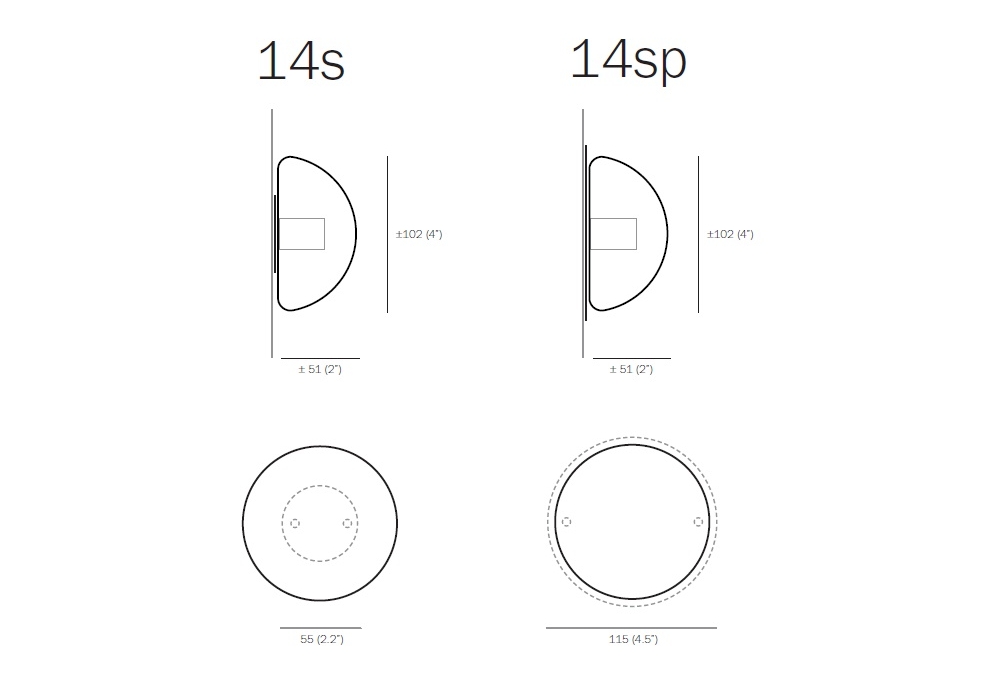 14 conçue par Omer Arbel pour Bocci est une applique avec diffuseur en verre fait main et est disponible dans les finitions suivantes: Gris, Ambre, Transparent ou Ambre Clair, avec source lumineuse LED ou Xénon. Le support structurel est en métal. 14 est disponible en deux versions différentes 14s et 14sp. le 14s ne se connecte pas directement au secteur, mais via une alimentation électrique ; tandis que le 14sp a une alimentation intégrée et peut être connecté directement au secteur.