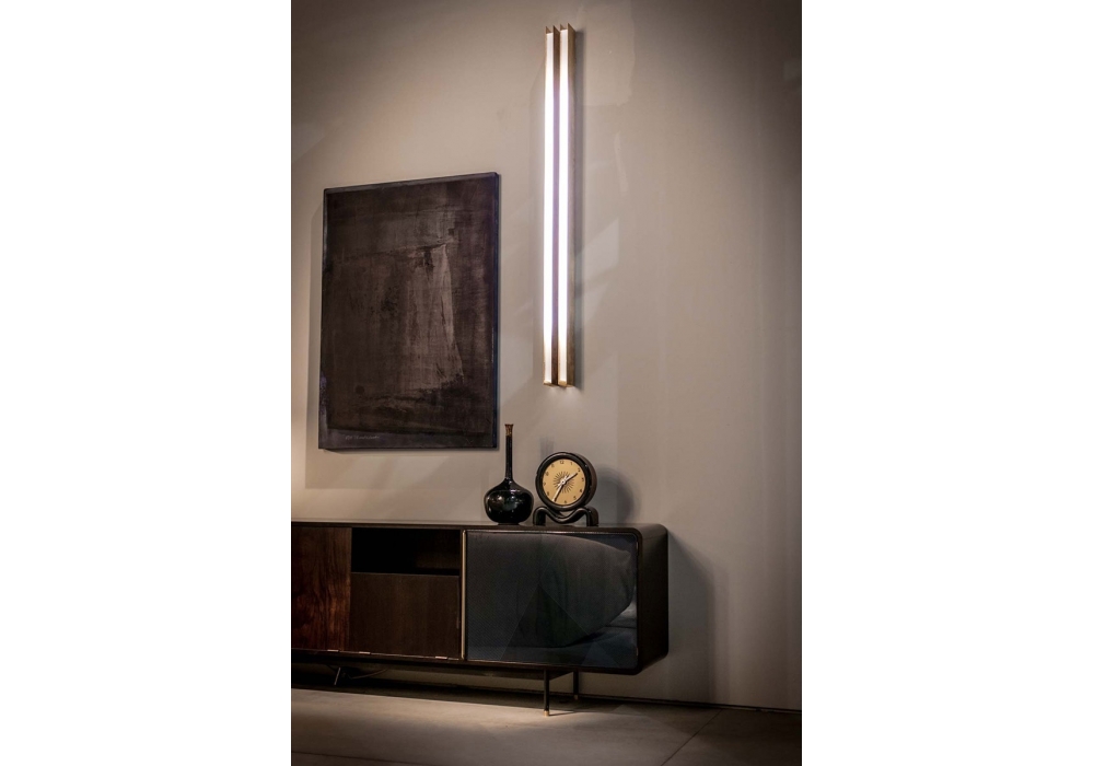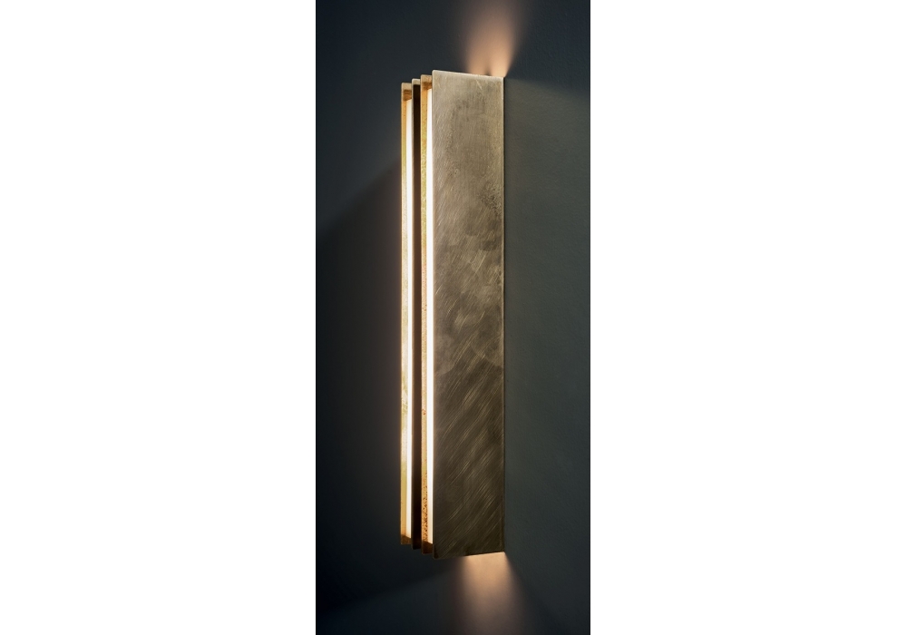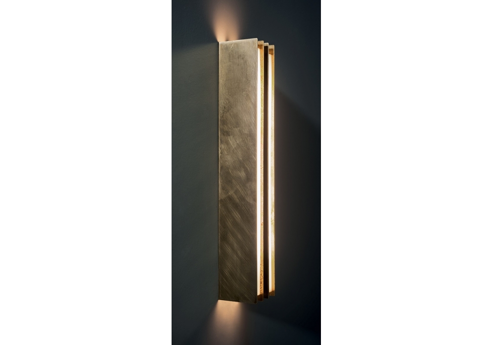 Blade conçue par Baxter P. pour Baxter est une applique à LED avec structure en laiton antique. Également disponible en 3 différentes dimensions.