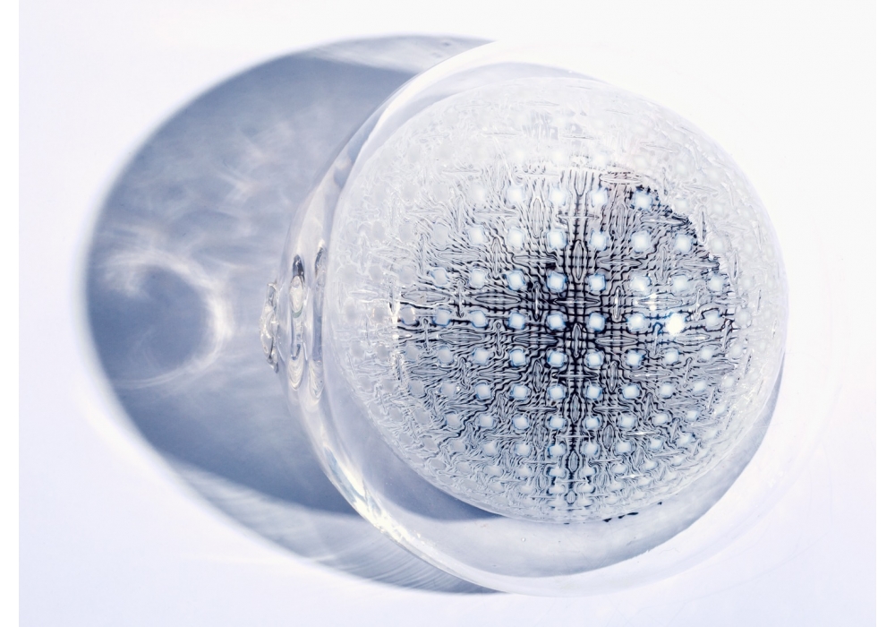| Matériau de construction | vetro soffiato; rete in rame; cavo coassiale intrecciato in metallo; rosone verniciato a polvere bianca |