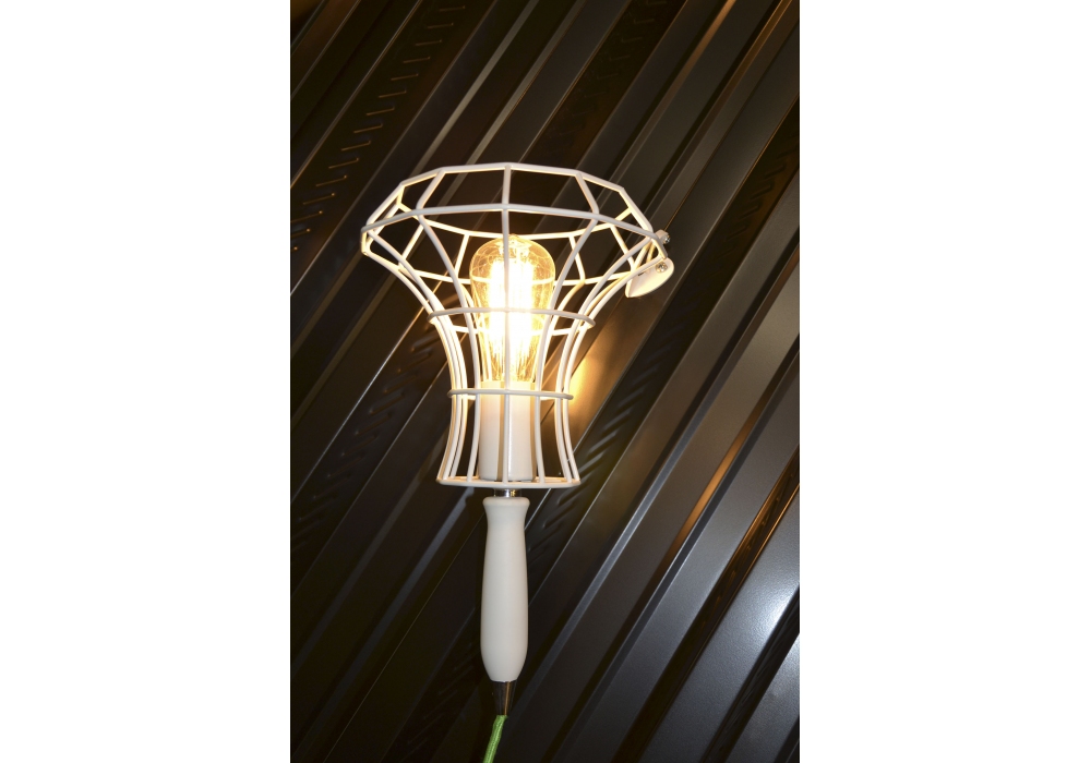 Lady Cage conçue par Massimo Rosati pour Zava est une applique avec structure en fer et poignée en plastique noir. Il est possible d'ajouter l'interrupteur sur le câble. Disponible en différentes finitions.