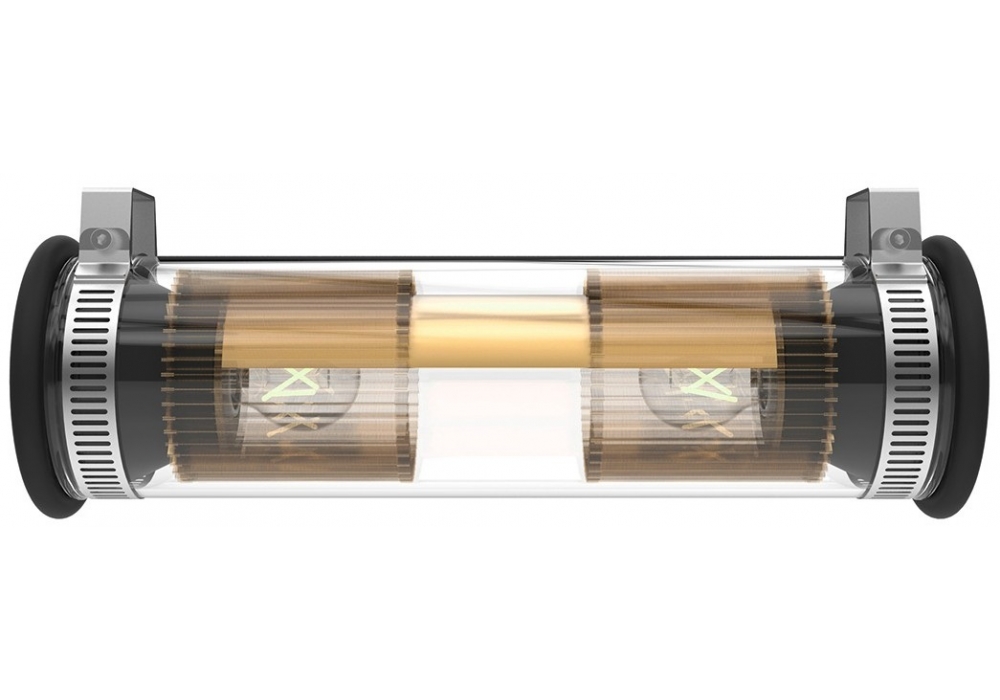In The Tube 100-350 conçue par Dominique Perrault & Gaëlle Lauriot-Prévost pour DCW Éditions est une lampe polyvalente, réalisée en verre borosilicate fermée de bouchons d'aluminium capée de silicone, qui peut être utilisé à l'intérieur et à l'extérieur, comme une suspension ainsi que sur un mur ou comme un plafonnier. La collection "In The Tube" est composée de modèles forts, figures libres et contraintes à la fois, déclinés en plusieurs versions de longueurs, diamètres et couleurs.