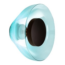 Aura conçue par Joan Gaspar pour Marset est une applique avec structure en polycarbonate et abat-jour en verre soufflé. Disponible en différentes finitions.
