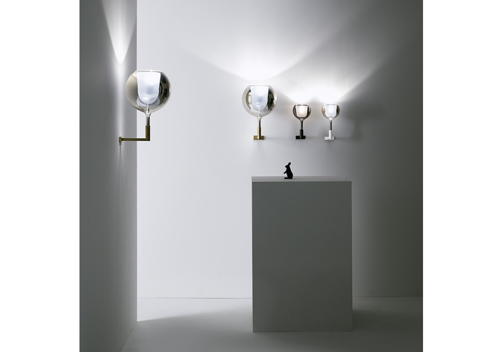 Glo conçue par Carlo Colombo pour Penta est une applique avec structure en métal peint. Le diffuseur est en forme de coupe en verre borosilicaté et adopte une source lumineuse de type LED. Glo est disponible en différentes tailles et finitions.