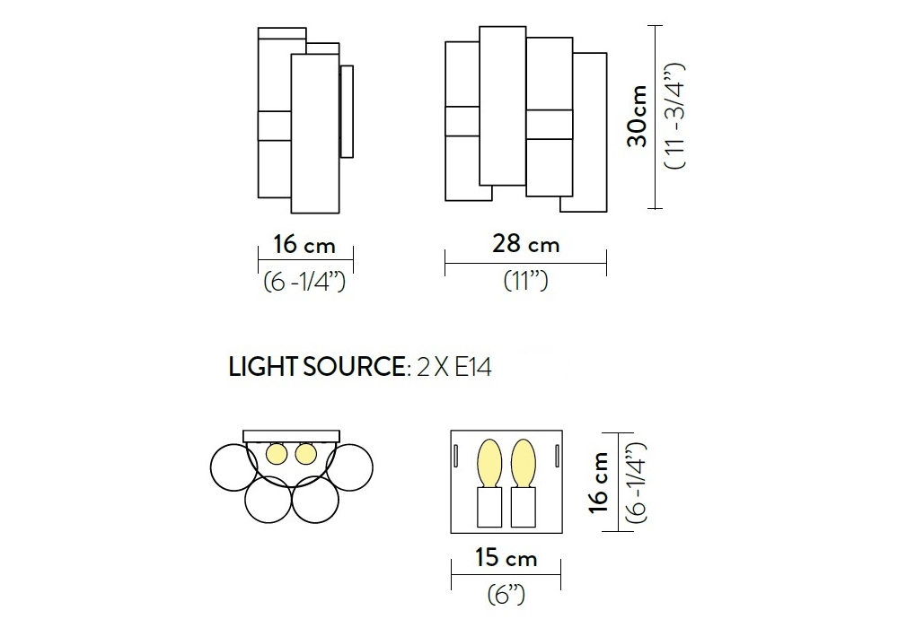 | Source lumineuse | • 2 X 6W E14 LED Filament |