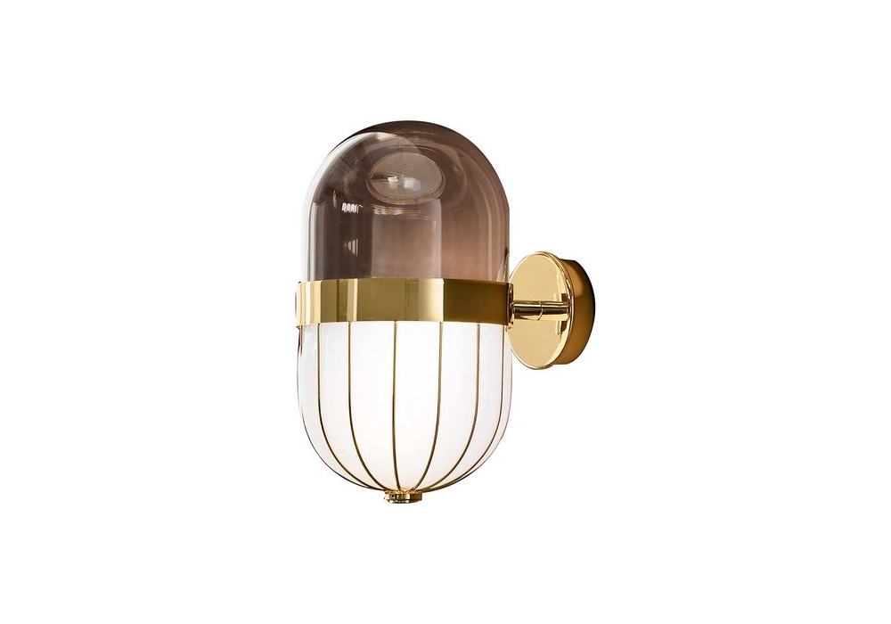 Pill 7237/A1 conçue par Matteo Zorzenoni pour MMLampadari est une applique avec structure en métal (or 24 carats) et diffuseur en verre disponible en deux variantes de couleurs.