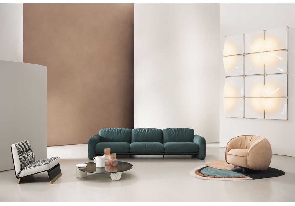 Googie conçue par Draga&Aurel pour Baxter est une applique/plafonnier modulable, avec abat-jour opale moulé blanc. Joints et détails en laiton satiné avec vernis mat.