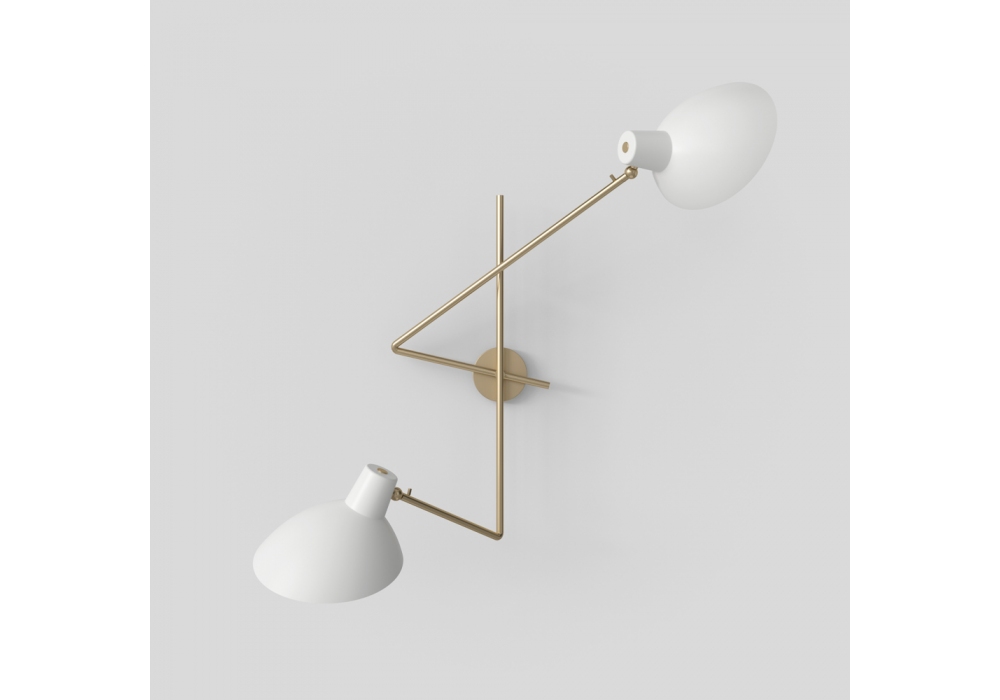 VVCinquanta Twin conçue par Vittoriano Viganò pour Astep est une applique avec diffuseurs en aluminium, structure en laiton disponible en différentes finitions.