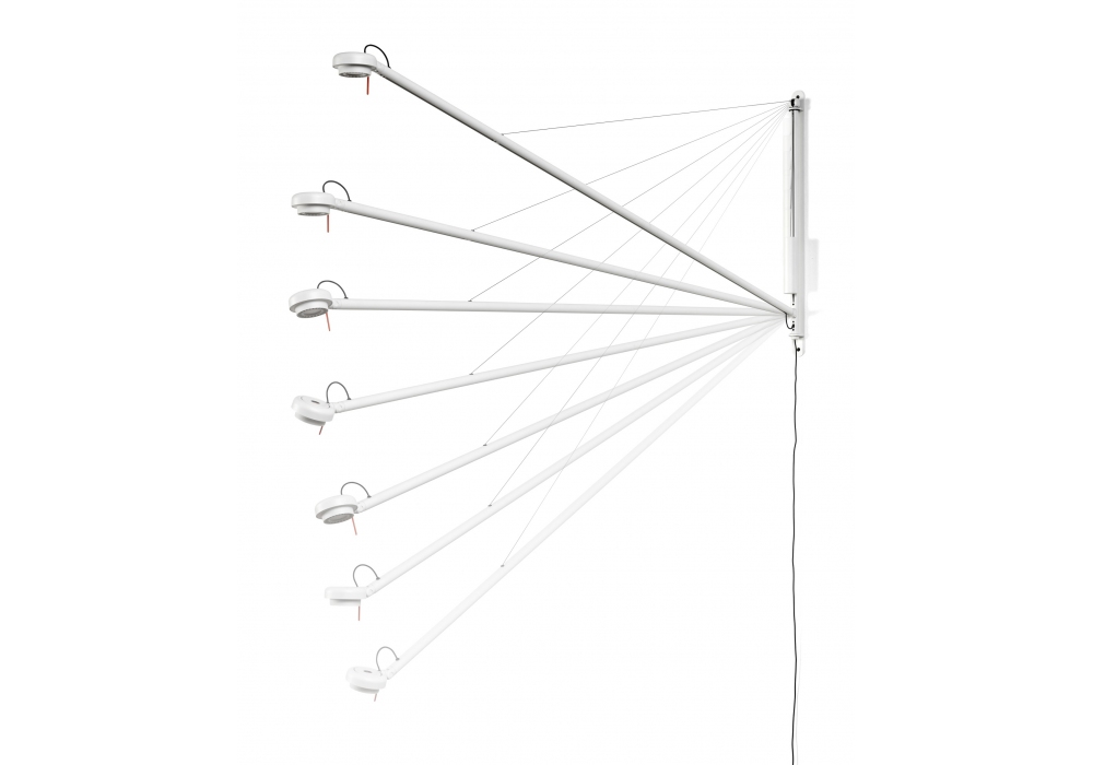 Fifty-Fifty Wall conçue par Sam Weller pour Hay est une applique avec bras en aluminium extrudé avec joints et diffuseur en aluminium moulé sous pression. Support mural en acier usiné avec contrepoids et câble en silicone noir. Disponible en différentes finitions.