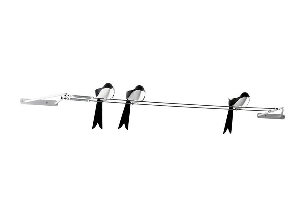 Le Rondini conçue par Elio Martinelli pour Martinelli Luce est une applique entièrement structurée en métal peint avec des conducteurs chromés. La source lumineuse utilisée est de type LED.