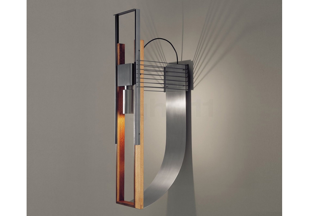 Marx conçue par Richard Neutra pour Martinelli Luce est une applique structurée en acier inoxydable, métal et bois. La source lumineuse utilisée est de type LED.