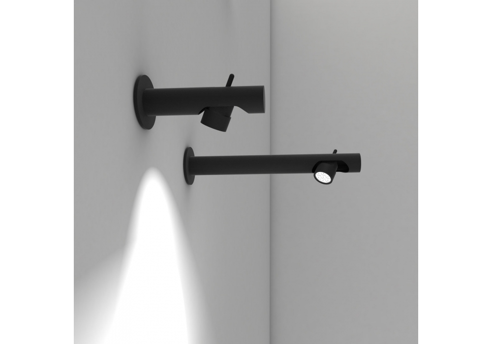 Calabrone conçu par Emiliana Martinelli pour Martinelli Luce est une applique / plafonnier structuré en aluminium tubulaire noir. Le corps de la lampe est rotatif tandis que la tête est réglable. Le diffuseur a différents types de lentilles et écrans une source de lumière LED intégrée. Calabrone est disponible avec alimentation intégrée ou déportée.