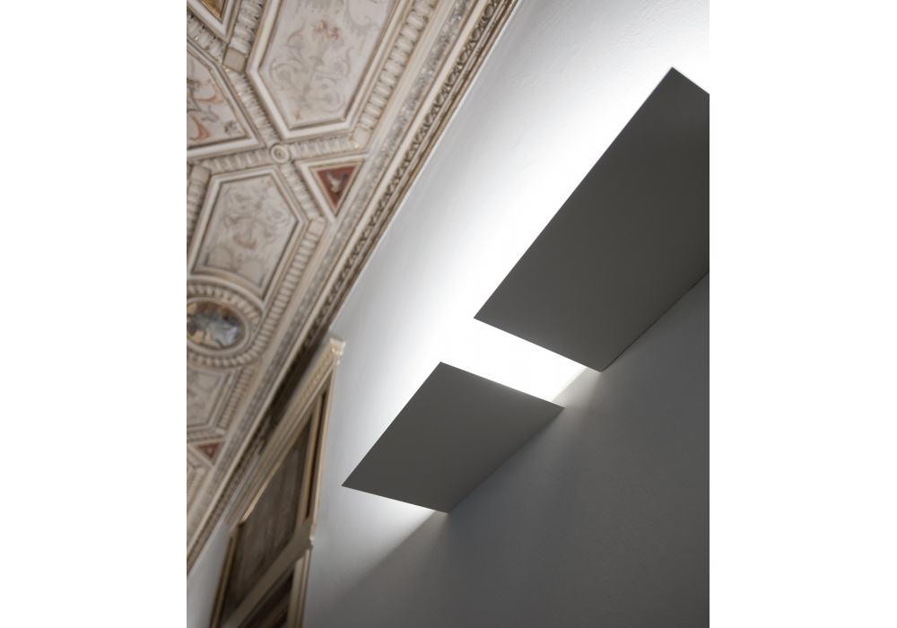 Foil conçue par Design 967 pour Davide Groppi est une applique ou plafonnier quadrangulaire entièrement en métal. La source lumineuse adoptée est à couplage de type LED R7s ou halogène. La feuille est disponible en différentes finitions.