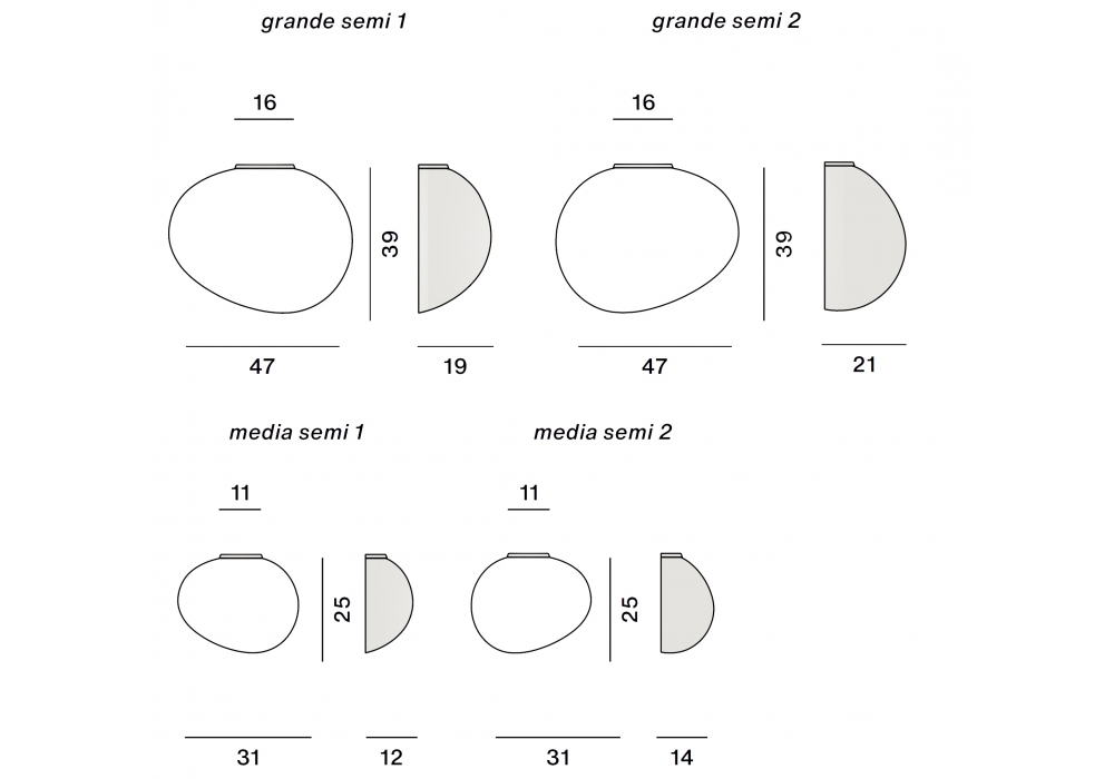 | Dimensions | 47 x 19 x H 39 cm (Large Semi1); 47 x 21 x H 39 cm (Large Semi2); 31 x 12 x H 25 cm (Medium Semi1); 31 x 14 x H 25 cm (Medium Semi2). |