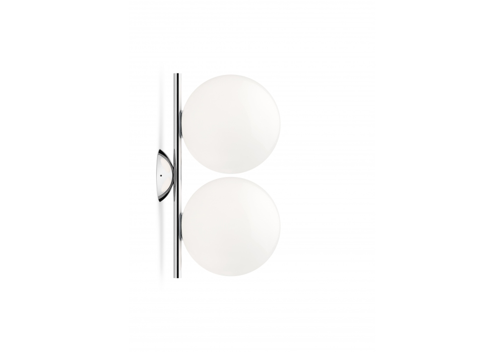 IC C/W1 Double conçue par Michael Anastassiades pour Flos est une applique/plafonnier à lumière diffuse. Structure en laiton, acier brossé et peint transparent ou chromé. Diffuseur opale en verre soufflé. Réglable à distance (variateur non inclus). Ampoule non incluse.