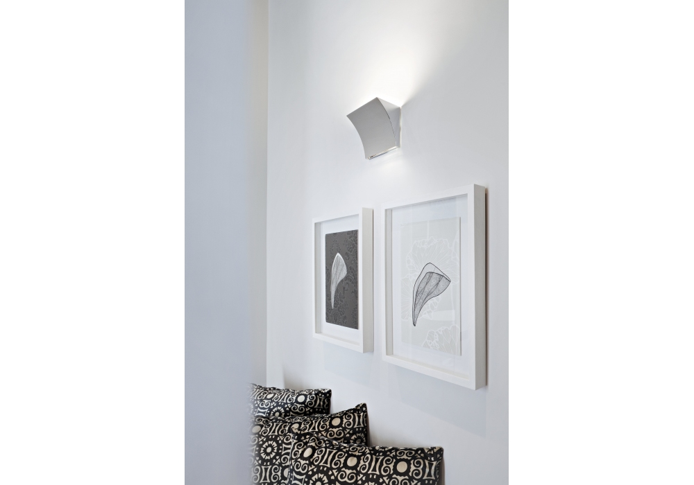 Pochette conçue par Rodolfo Dordoni pour Flos est une applique à lumière directe/indirecte. Corps en alliage de zamak moulé sous pression, peint en gris mat, blanc brillant ou finition chromée galvanisée. Fixation murale en acier embouti et galvanisé blanc, comprenant le système de fixation et les appareils électriques. Source lumineuse LED incluse. Fuente de luz LED incluida.