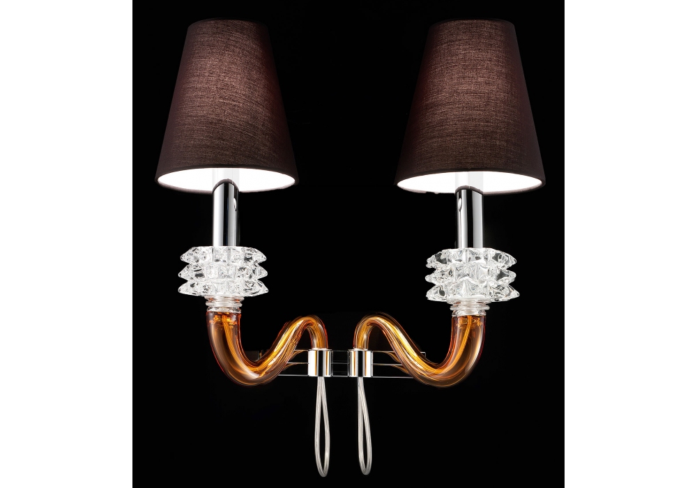 Domo Amsterdam conçue par Franco Raggi pour Barovier & Toso est une applique murale avec structure portante en métal avec des détails en or galvanisé, chrome poli ou chrome noir. Les bras et le corps de la lampe sont recouverts de verre vénitien avec des ornements en cristal. Les abat-jour sont en tissu et cachent des sources lumineuses LED ou halogènes dimmables. Domo Amsterdam est disponible en différentes finitions et modèles.