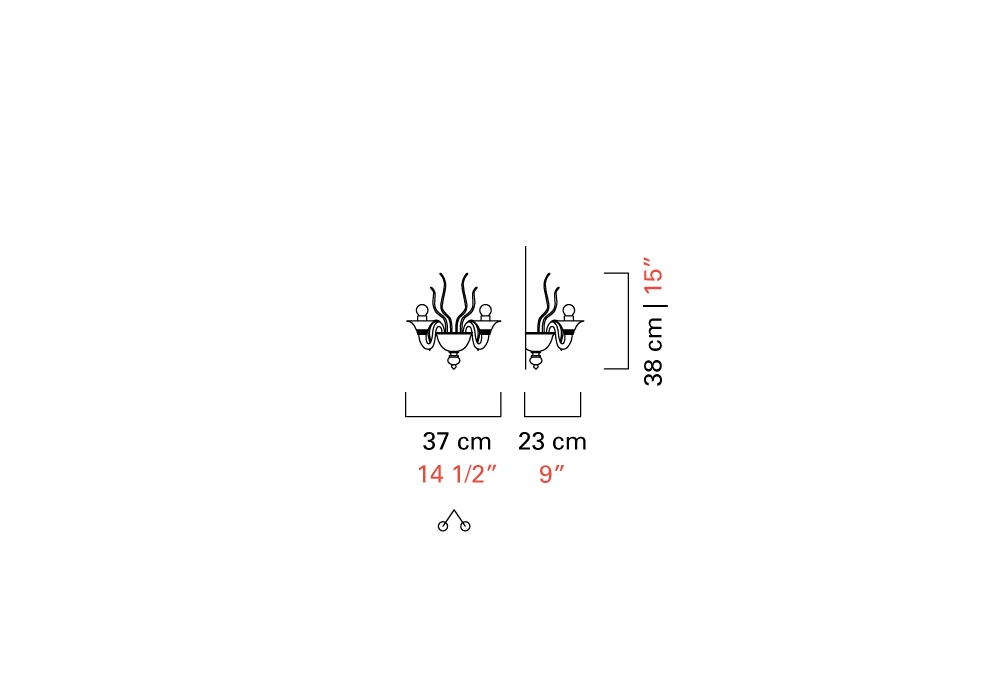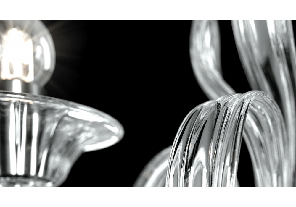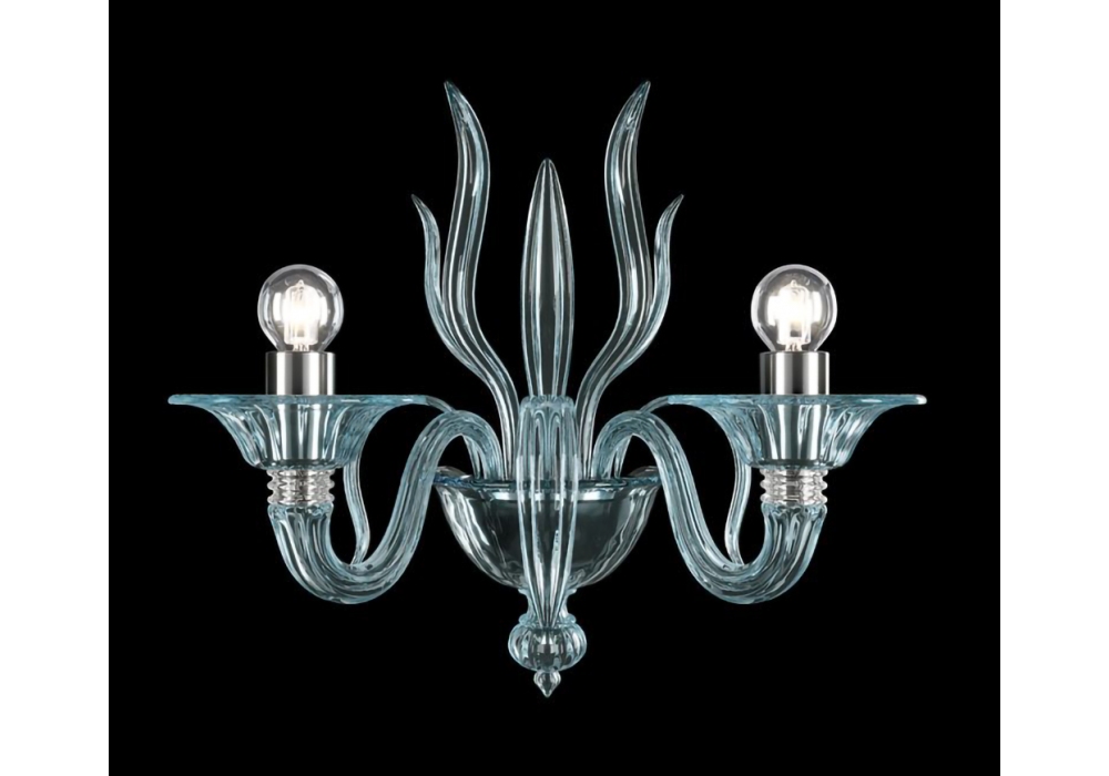 Fauve conçue et produite par Barovier & Toso est une applique murale avec structure portante et décorations en métal dans les finitions or galvanisé ou chrome poli. Les bras et le corps de la lampe sont recouverts de verre vénitien avec des pendentifs en cristal. Les sources lumineuses retenues sont de type LED dimmable ou halogène.