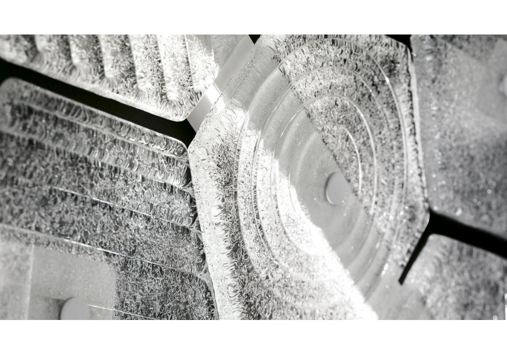 Marrakech conçue par Barovier & Toso est une applique polyvalente avec structure portante en métal peint en blanc. Les diffuseurs sont des briques de forme hexagonale en verre vénitien transparent et cachent des sources lumineuses de type LED. Marrakech est disponible en différents modèles et compositions.