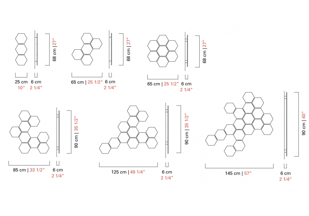 | Dimensions | 25 x 6 x H 68 cm; 65 x 6 x H 68 cm; 65 x 6 x H 68 cm; 85 x 6 x H 90 cm; 125 x 6 x H 102 cm; 145 x 6 x H 135 cm. |