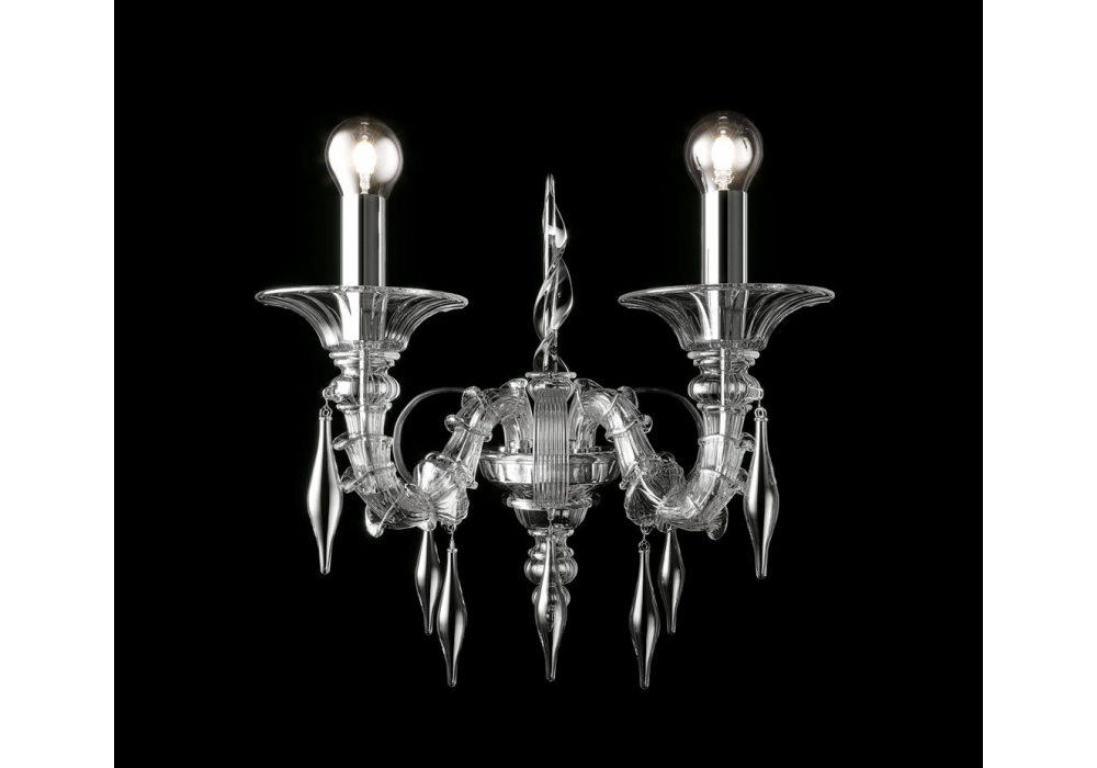 San Giorgio conçue et produite par Barovier & Toso est une applique avec structure portante et décorations en métal galvanisé doré ou chromé poli. Le corps de la lampe et les bras sont entièrement recouverts de verre vénitien agrémenté de pampilles en cristal. La source lumineuse utilisée est de type LED dimmable ou halogène. San Giorgio est disponible en différentes finitions.
