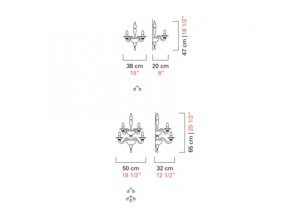 Valiant conçue et produite par Barovier & Toso est une applique avec structure de support et détails en métal galvanisé doré ou chromé poli. Les bras et le corps de la lampe sont recouverts de verre vénitien avec des décorations en cristal. Les sources lumineuses retenues sont de type LED dimmable ou halogène. Valiant est disponible en différents modèles et finitions.