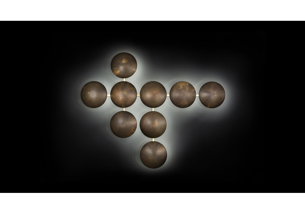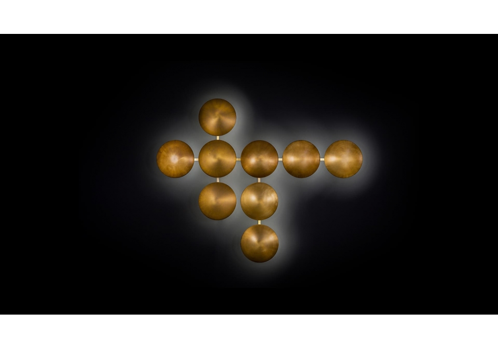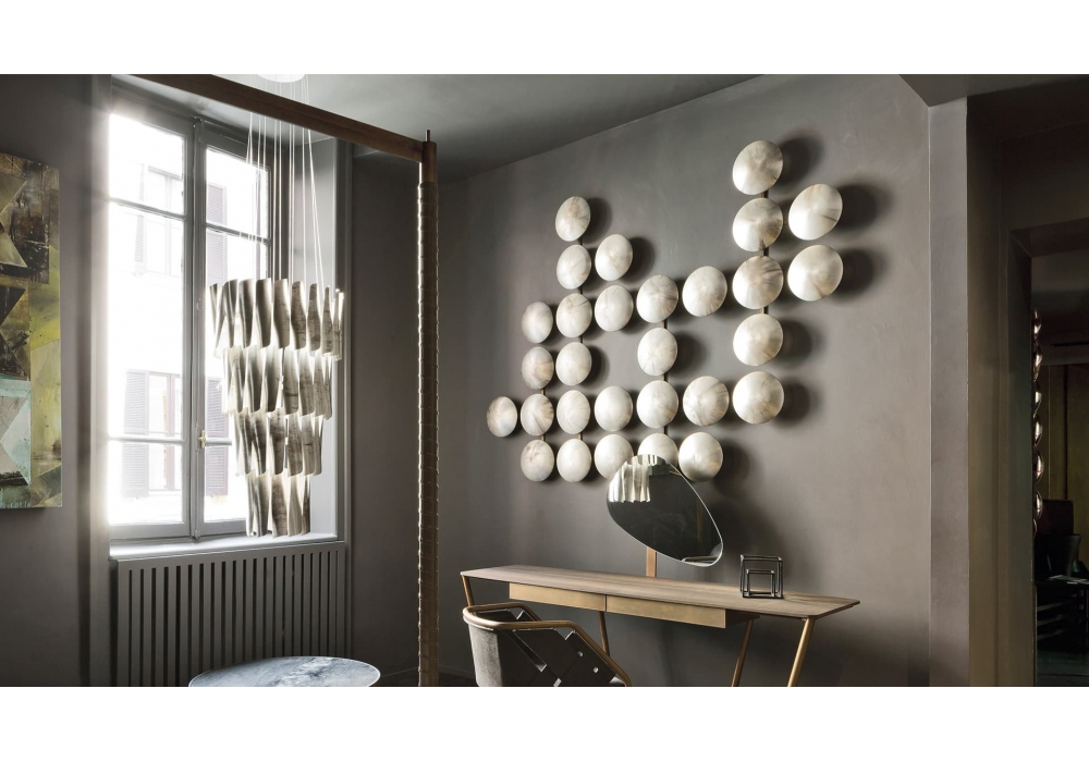 Wall Clips conçue par Massimo Castagna pour Henge est une applique murale composée d'une combinaison d'éléments métalliques ronds (Ø 23,5 cm ou Ø 40 cm).