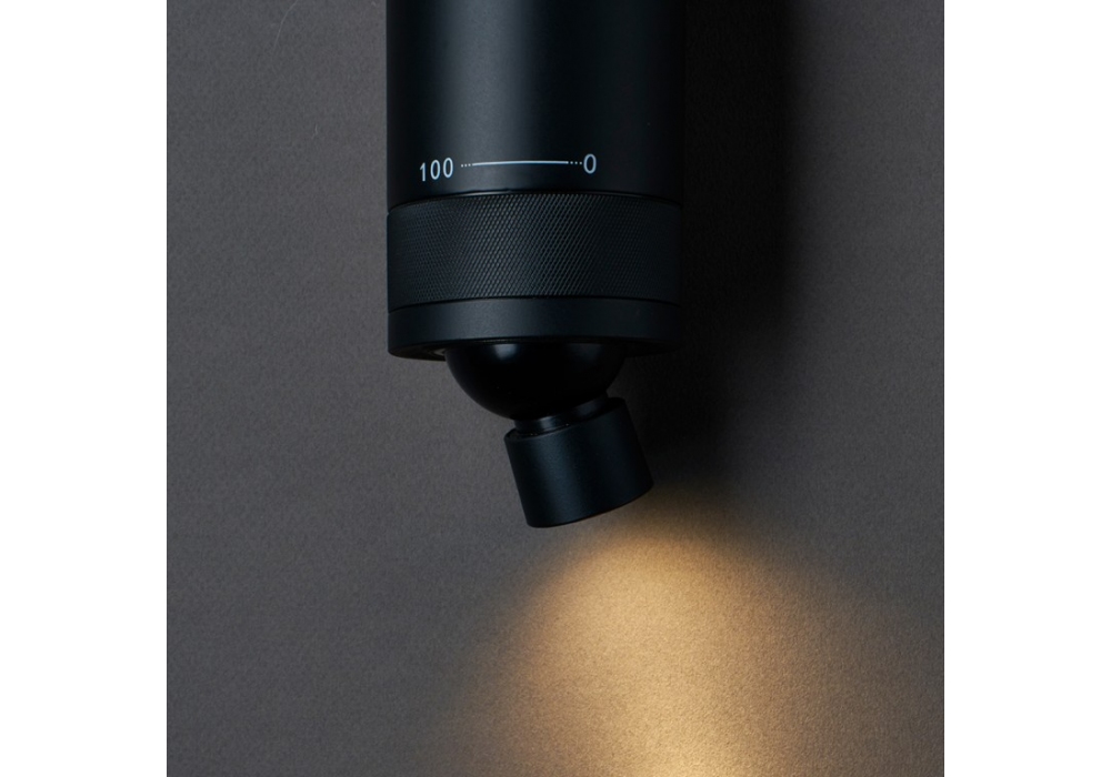 Vision 20/20 Omni conçue par DCW Éditions est une applique murale en aluminium et équipée de deux sources LED intégrées. Sa bague de réglage d'intensité (de 0 à 100 sur l'échelle Dimm-Ring) allume/éteint l'éclairage et contrôle la puissance du flux lumineux de la source orientable uniquement. Tandis que la source lumineuse supérieure est contrôlée par un interrupteur mural.