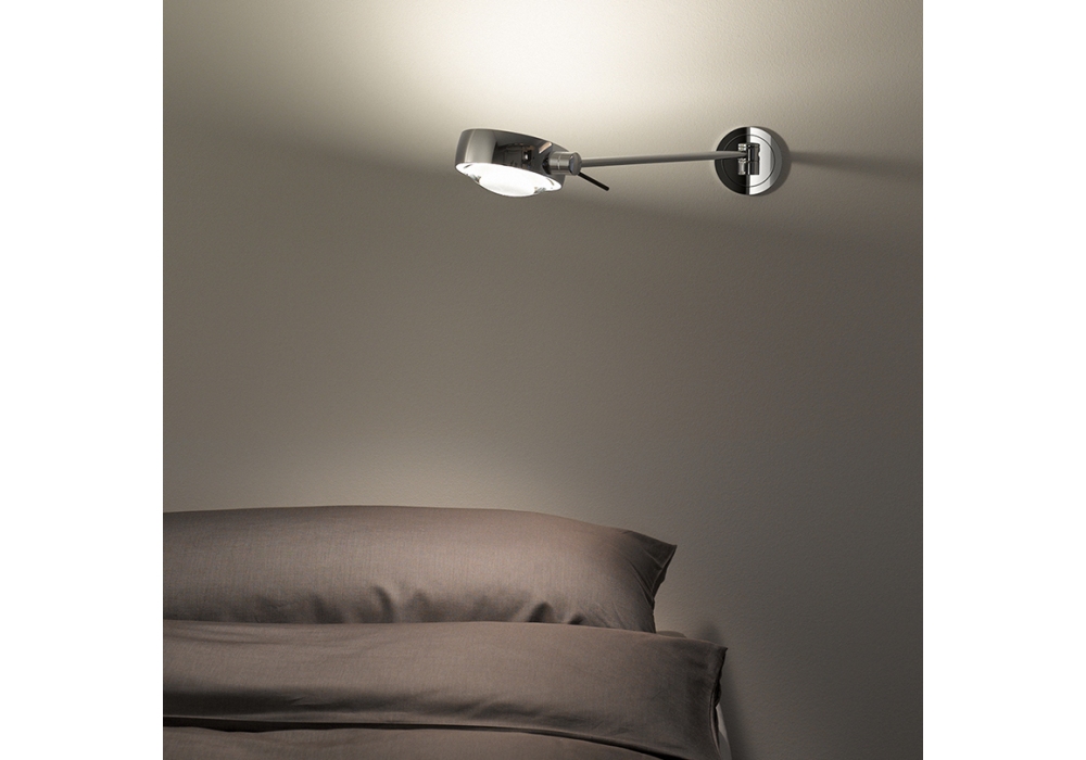 Sento Letto conçue par Occhio est une applique à LED en aluminium, plastique, verre et plastique optique avec base plate pour montage sur boîte souterraine ou base haute avec alimentation incluse. Dimmable via « contrôle sans contact » ou via Occhio air. Disponible en différentes finitions, dimensions et modèles.