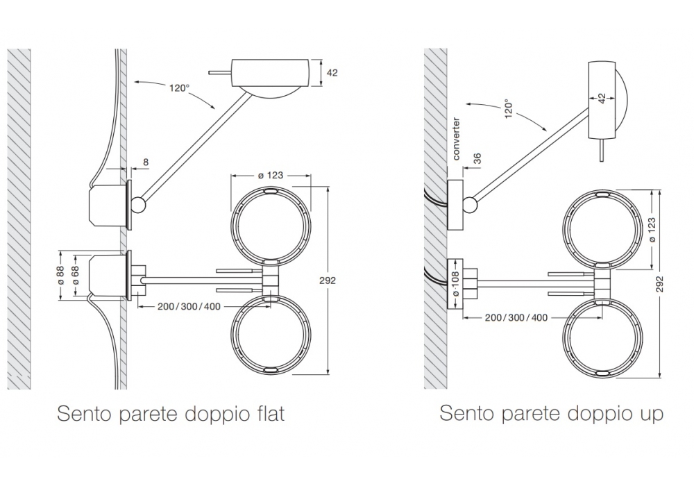 Sento Doppio conçue par Occhio est une applique à LED en aluminium, plastique, verre et plastique optique avec base plate pour montage sur boîte souterraine ou base haute avec alimentation incluse. Dimmable via « contrôle sans contact » ou via Occhio air. Disponible en différentes finitions, dimensions et modèles.