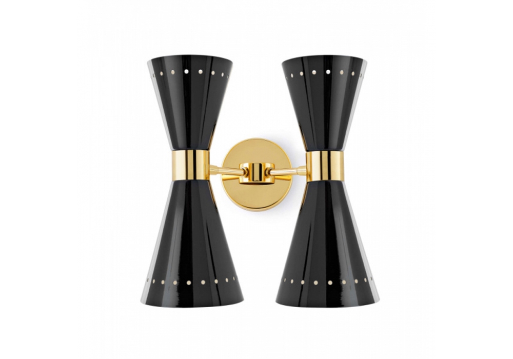 Megafono conçue et produite par Stilnovo est une applique murale à LED avec un corps en laiton galvanisé de couleur or en deux finitions : or-noir et or-ivoire. Le diffuseur est conique en métal et adopte une source lumineuse LED à double émission. Megafono est disponible en version simple ou double.