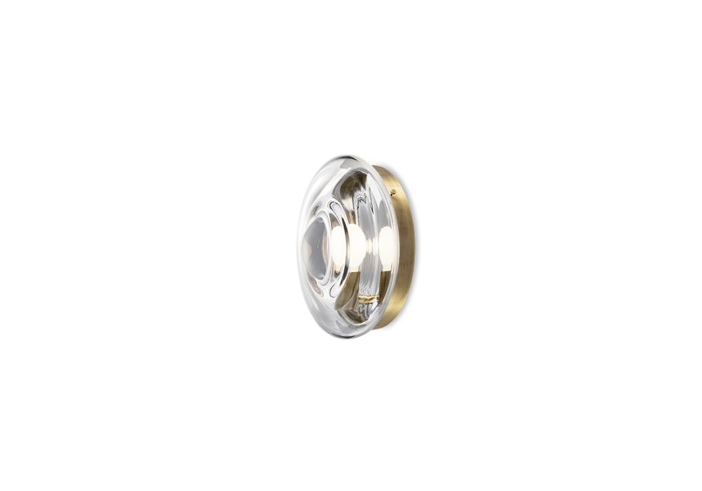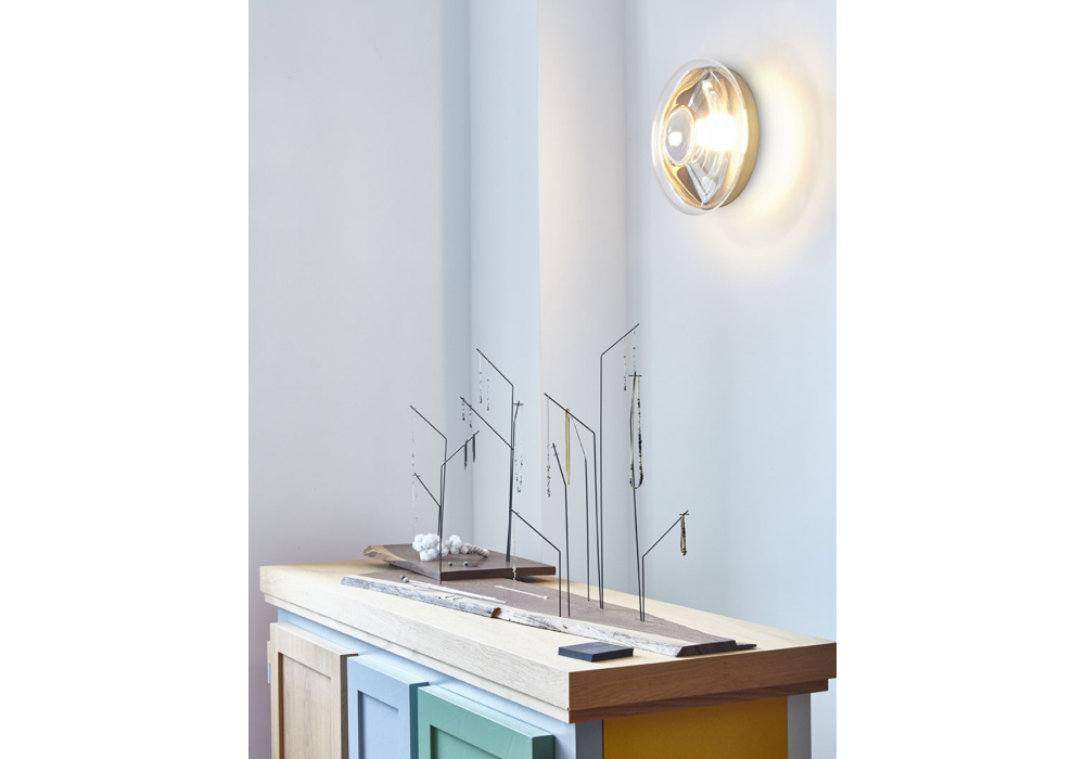 Orbital conçue par Studio deFORM pour Bomma est une applique / plafonnier avec un diffuseur en cristal soufflé à la bouche. Il est disponible en différentes finitions.