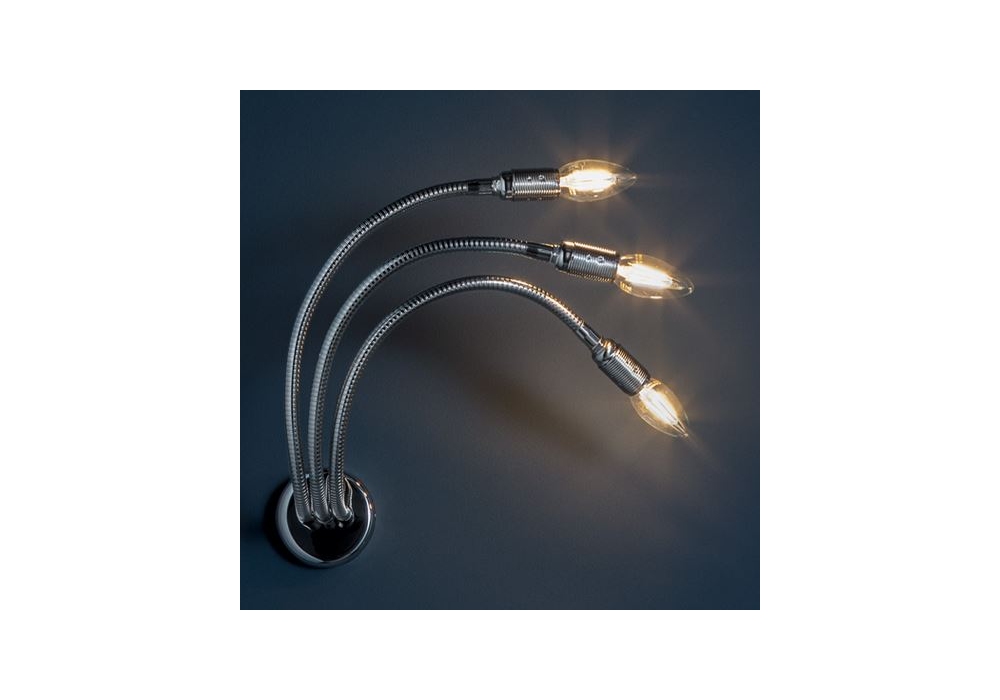 Turciù 2/3 conçu et produit par Catellani & Smith est une applique avec base en métal satiné, flex moulable en laiton ou nickel. Disponible en deux modèles, à deux ou trois flex.