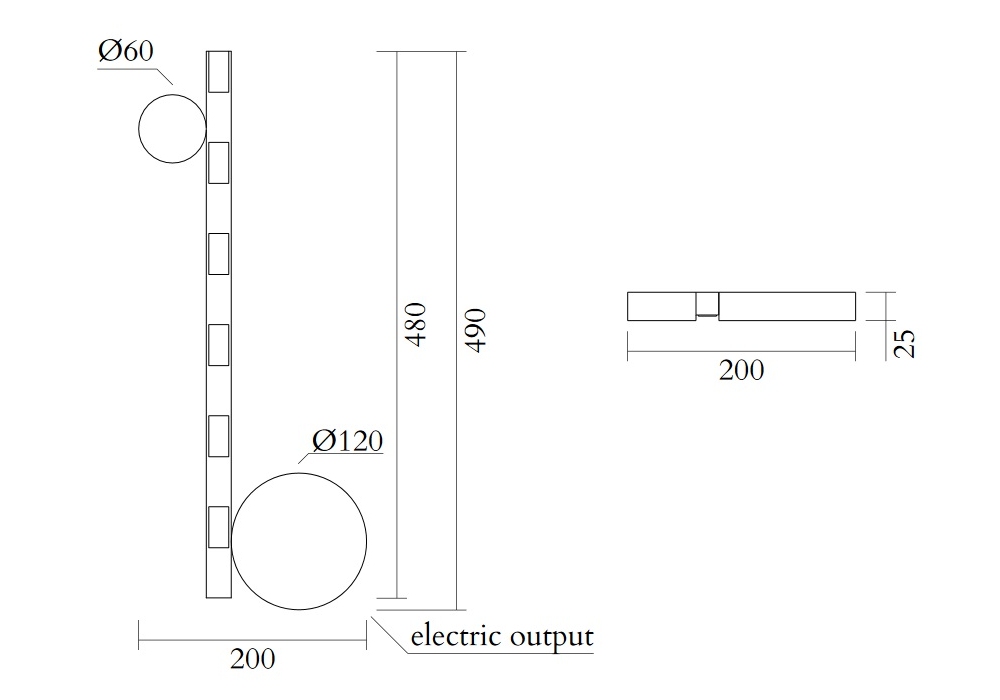 | Dimensions | • L 20 x 2,5 x H 49 cm; • L 20 x 2,5 x H 144 cm; • L 80,5 x 2,5 x H 48 cm; • L 121 x 2,5 x H 48 cm |