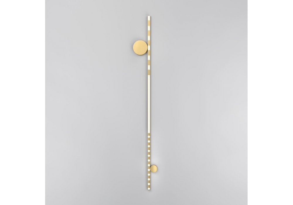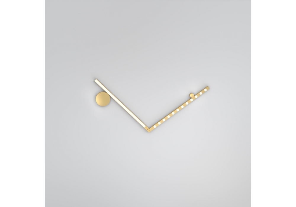 Linetype conçue par Atelier Areti est une applique réalisée en laiton brossé et panneaux acryliques blancs. Disponible en différents modèles.