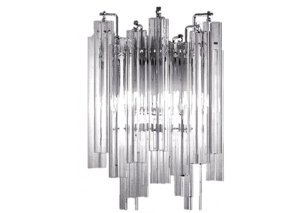 Trilobi conçue et produite par Venini est une applique murale à LED dimmable avec des éléments en verre soufflé à la bouche. Les détails métalliques sont en finition chromée.