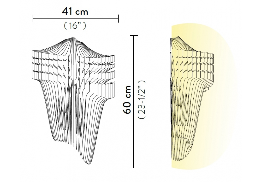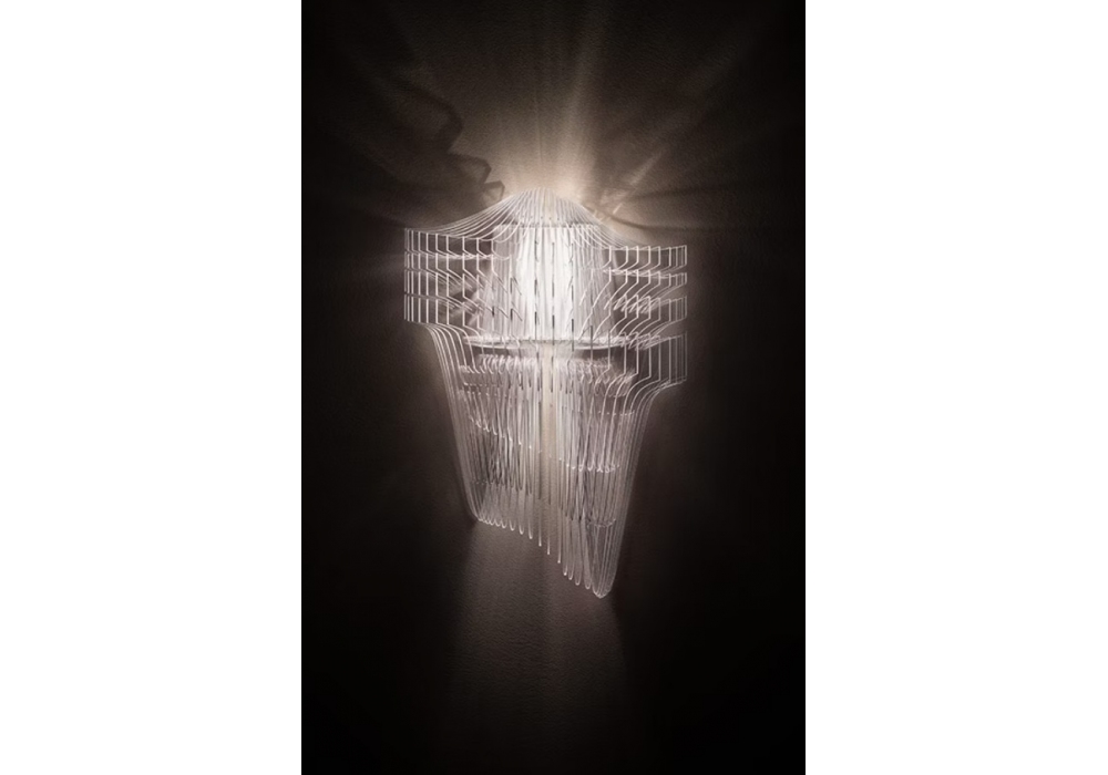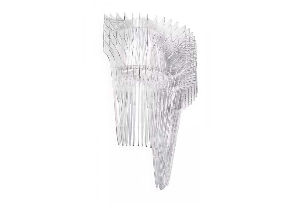 Aria conçue par Zaha Hadid pour Slamp est une applique murale LED semi-circulaire structurée en Cristalflex® ou Lentiflex® avec une surface irrégulière en différentes finitions. La source lumineuse utilisée est une LED à filament dimmable.
