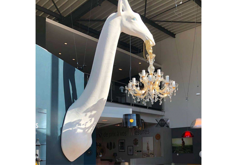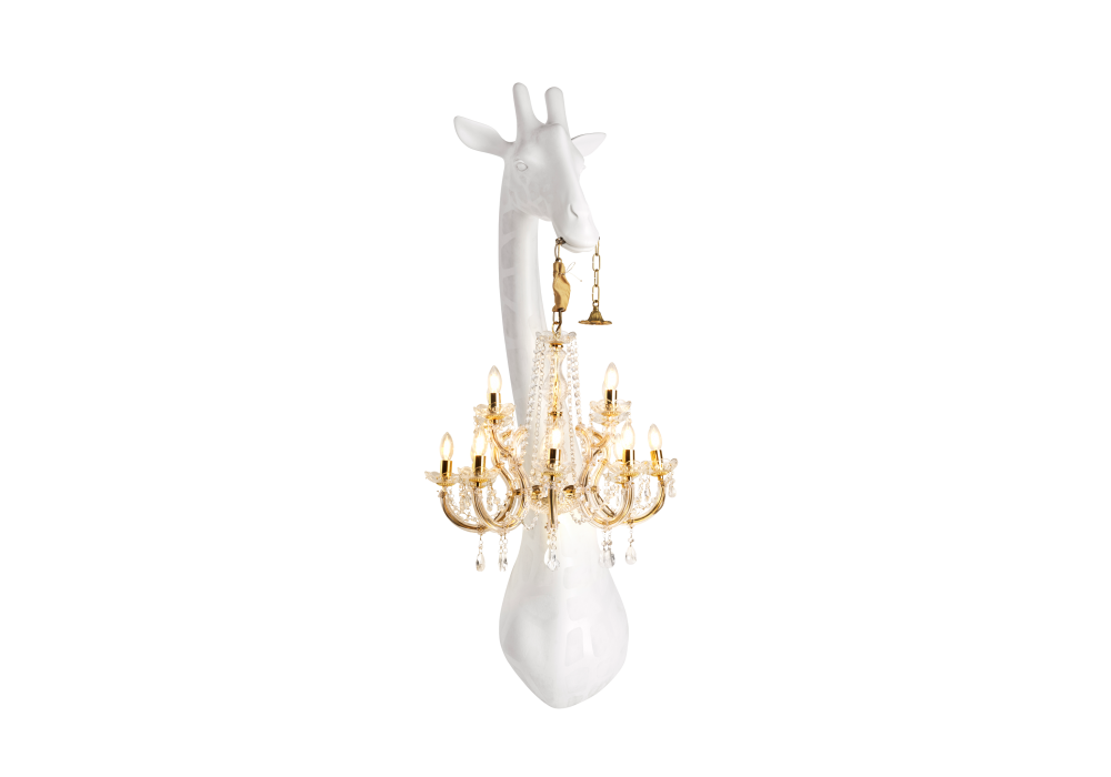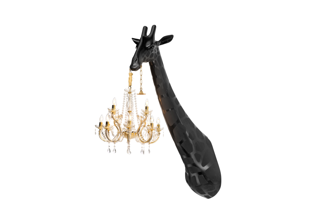 Giraffe in Love conçue par Marcantonio pour Qeeboo est une applique murale en polyéthylène, polycarbonate et verre disponible en différentes finitions.